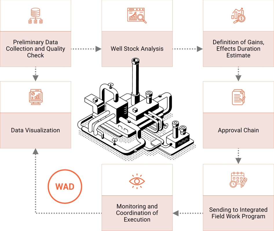 As a result, it generates a pool of recommended field activities aimed at improvement of well performance and production increase.